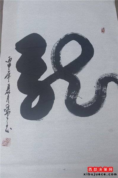 龍乃華人想象中最尊貴、最吉祥之物。生活之中無(wú)所不在,上下五千年,仍一以貫之,舉世無(wú)與倫比。華人更以龍的傳人自居,一旦風(fēng)起云涌,海生駭浪,則龍卷風(fēng)云,霞光萬(wàn)丈。其“一筆龍”書(shū)法作品將書(shū)法和繪畫(huà)非常巧妙的而高度的融合,依易經(jīng)智慧,集意念、氣功為一體,運(yùn)筆如神,酬勁有力,一氣呵成,氣勢(shì)磅礴,形象逼真。整個(gè)字體呈現(xiàn)出一條蒼龍騰躍飛天之勢(shì),寓意了中國(guó)龍騰飛吉祥的福兆,更展現(xiàn)了中華民族不屈不饒的民族精神。
