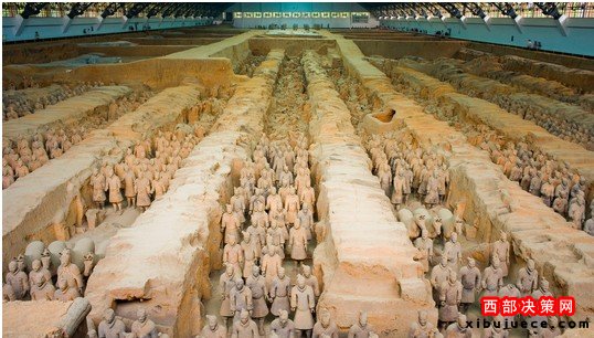 1974年,臨潼縣西楊村發(fā)現(xiàn)的一處地下建筑及陶俑震動了世界,這就是被稱為“世界第八大奇跡”的秦陵兵馬俑。1987年,聯(lián)合國教科文組織舉辦的世界遺產委員會第11屆全體會議上,首次將中國的秦始皇陵(含兵馬俑坑)、故宮博物院、周口店北京人遺址、泰山、長城、敦煌莫高窟6處文化與自然遺產列入世界遺產名錄。陜西秦始皇陵和中國其他世界遺產一起得到世界的尊重。