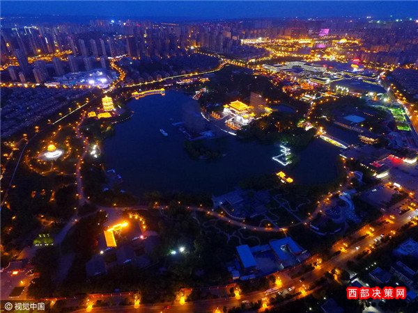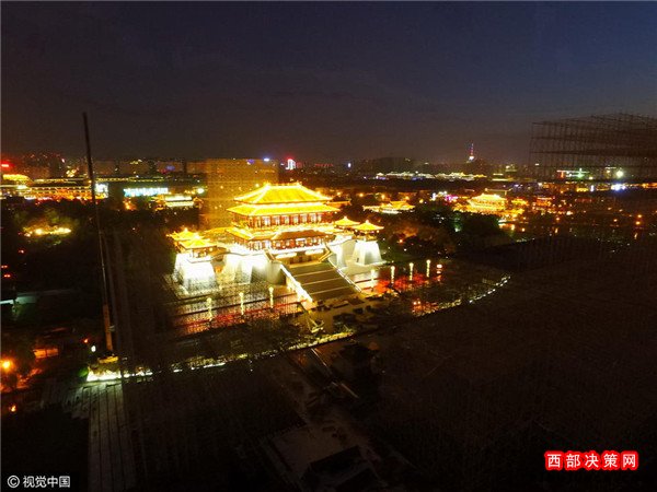 2016年08月30日,陜西省西安市,中央電視臺中秋晚會西安大唐芙蓉園分會場正在緊張布置中。記者從利用無人機(jī),分別航拍到大唐芙蓉園白天與夜晚的壯美風(fēng)景,如同一幅美麗畫卷,等待著中秋佳節(jié)的到來。