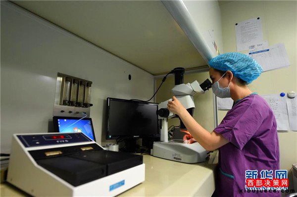 重慶市遺傳與生殖研究所實驗室工作人員在顯微鏡下對胚胎進行操作