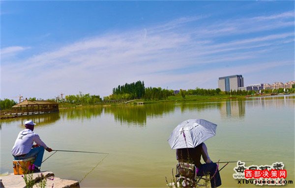 9月4日,“文博會(huì)網(wǎng)絡(luò)宣傳周”采訪團(tuán)75家媒體近百名記者一行走進(jìn)蘭州新區(qū)時(shí),就被碧波蕩漾的2號(hào)湖濱區(qū)所吸引,湖邊盛開(kāi)著紅的、黃的、紫的鮮花,湖里隱約可見(jiàn)各種彩色的錦鯉,游人或愜意地在湖邊垂釣,或聚集在觀景臺(tái)欣賞音樂(lè)噴泉,或悠然自得地泛舟湖上。