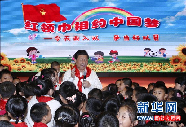 (2014年5月30日,習近平來到北京市海淀區(qū)民族小學,參加慶祝“六一”國際兒童節(jié)活動。這是習近平在參加少先隊入隊儀式時,向少先隊員們致以節(jié)日問候。新華社記者鞠鵬攝)