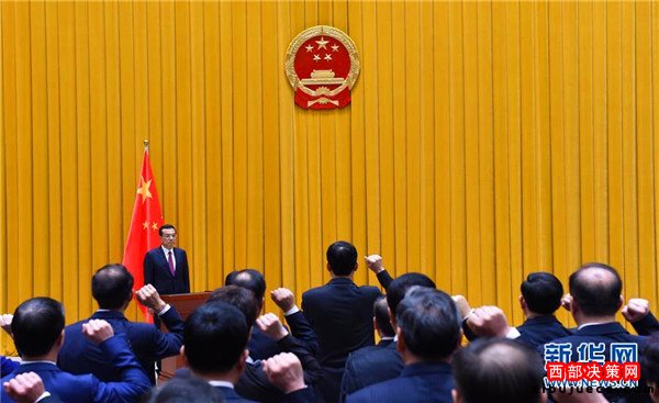 9月18日上午,國務(wù)院在北京中南海首次舉行憲法宣誓儀式。國務(wù)院總理李克強監(jiān)誓。