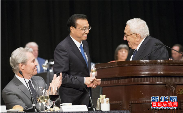 李克強(qiáng)表示,基辛格博士45年前訪華時(shí),中美貿(mào)易幾乎為零。45年后的今天,中美貿(mào)易額占全世界貿(mào)易總量的五分之一,中美經(jīng)濟(jì)總量之和占世界經(jīng)濟(jì)總量的三分之一。我們的貿(mào)易和投資量如此之大,自然難免有分歧摩擦,但我們之間的共同利益遠(yuǎn)大于誤解和分歧。我們正在進(jìn)行的雙邊投資協(xié)定談判就是向兩國工商界發(fā)出中美進(jìn)一步擴(kuò)大相互開放和投資的積極信號(hào)。希望美方采取務(wù)實(shí)靈活態(tài)度,與中方共同努力達(dá)成高水平、互利共贏的雙邊投資協(xié)定。兩國可以通過更多貿(mào)易與人員往來,坦誠溝通,增進(jìn)理解與互信,推動(dòng)中美關(guān)系朝著穩(wěn)定向好的方向繼續(xù)前行。