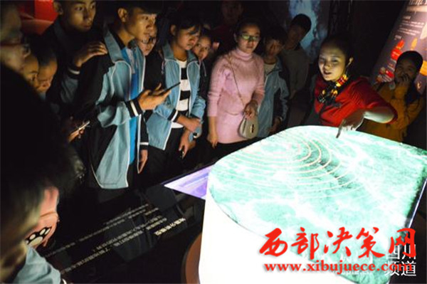 圖為工作人員正為前來(lái)參觀的孩子們講解地震知識(shí)。