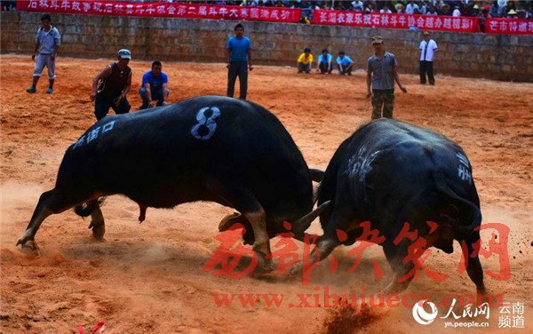 云南石林:60余頭斗牛爭奪"牛王"喜迎縣慶60周年