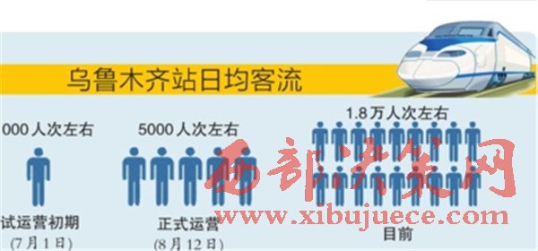 烏魯木齊站統(tǒng)計(jì)數(shù)據(jù)顯示,隨著始發(fā)終到列車(chē)增多、周邊公交線路增多以及知曉度提升,該站日均旅客發(fā)送量也由試運(yùn)營(yíng)初期的1000人次左右,到8月12日正式運(yùn)營(yíng)的5000人次左右,再穩(wěn)步增加到目前的1.8萬(wàn)人次左右。
