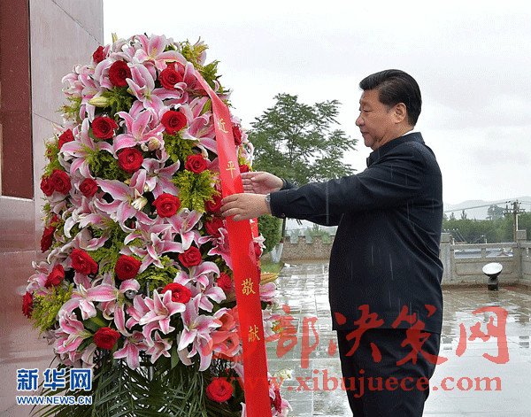 2016年7月18日至20日,中共中央總書記、國家主席、中央軍委主席習(xí)近平在寧夏調(diào)研考察。這是7月18日上午,習(xí)近平在固原市西吉縣將臺堡向紅軍長征會師紀(jì)念碑敬獻(xiàn)花籃。新華社記者李濤攝