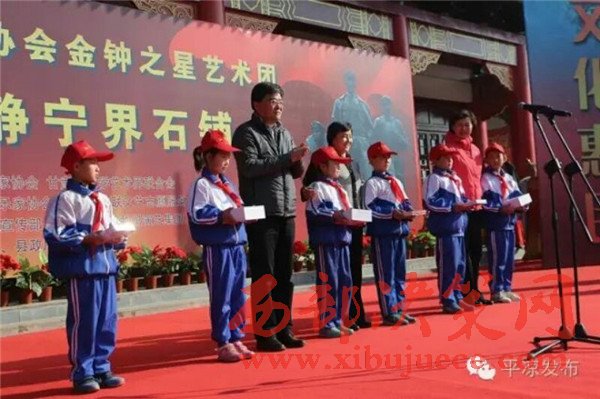 市委書記鄭亞軍致辭,慰問演出活動(dòng)由靜寧縣委書記王曉軍主持。鄭亞軍指出,平?jīng)鍪且粋€(gè)古老而又神奇的地方,更是一塊紅色的熱土。1935年8月到1936年10月,紅一、二、四方面軍和紅二十五軍全部過境平?jīng)?,紅色足跡遍及平?jīng)銎呖h區(qū)。界石鋪?zhàn)鳛榧t軍三大主力靜會(huì)地區(qū)會(huì)師的“中心基地”,是紅軍長征途徑的主要地區(qū),留下了毛澤東、周恩來、張聞天等五位黨和紅軍領(lǐng)導(dǎo)人,開國十大元帥中的九位元帥,十大將軍中的八位將軍,還有57位上將中的47位、177位中將中的161位、千余位少將和數(shù)萬紅軍將士的歷史足印,在中國革命史上具有重要的歷史地位,發(fā)揮了重要的作用。