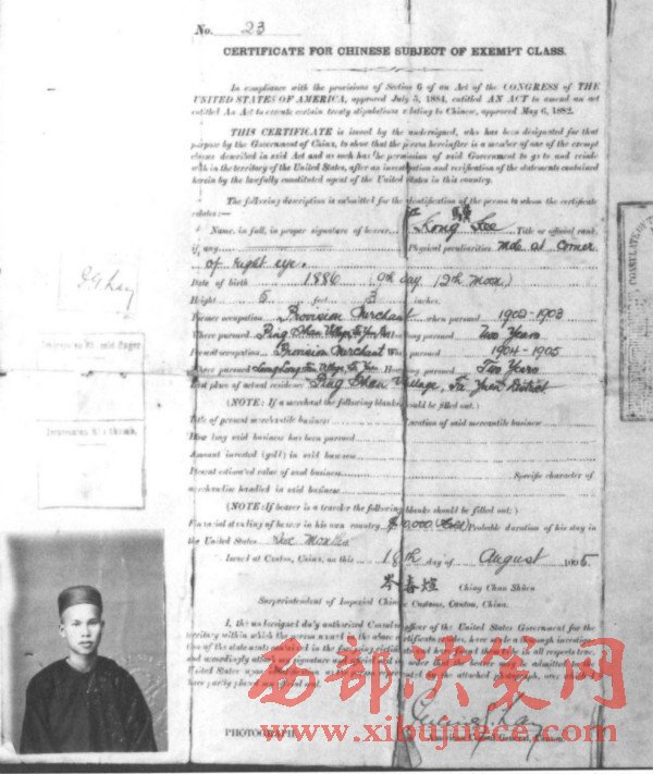 如此看來(lái),他是一位了不起的地方富商。江驥的太和商店主要經(jīng)營(yíng)雜貨貿(mào)易。因此,他向廣州政府申請(qǐng)去美國(guó)游歷,開(kāi)開(kāi)眼界。雖然1905年是美國(guó)百年排華運(yùn)動(dòng)的高潮年,而且美國(guó)政府明令禁止“華工”入境。就在江驥申請(qǐng)游美護(hù)照的前一個(gè)月,中國(guó)爆發(fā)了聲勢(shì)浩大的抵制美貨運(yùn)動(dòng),其目的就是抗議美國(guó)壓迫華僑。但是,美國(guó)是允許中國(guó)商人入境游歷的,像江驥這樣的廣州富商,更是歡迎。所以,兩廣總督岑春煊會(huì)同美國(guó)駐廣州總領(lǐng)事雷伏禮在1905年8月18日分別在江驥的中國(guó)護(hù)照了簽名,準(zhǔn)許其赴美游歷。