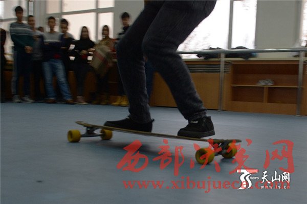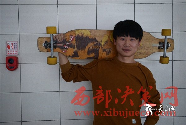 這名男生叫田澤林,正在新疆農(nóng)業(yè)大學(xué)讀大三,他同時(shí)還是新疆農(nóng)業(yè)大學(xué)libero滑板社的創(chuàng)始人之一。田澤林介紹,滑板是一種街頭文化,又是一項(xiàng)極限運(yùn)動,能讓人感受到生命的力量。傳統(tǒng)的滑板文化是人們挑戰(zhàn)自我熱愛生活的態(tài)度,當(dāng)身體隨著滑板騰空而起的時(shí)候,那感覺讓人心醉。所以,當(dāng)初給滑板社取名的時(shí)候,大家不約而同想,這個(gè)名字要具有力量性、挑戰(zhàn)性、自由性、時(shí)尚性。經(jīng)過再三討論,libero誕生。