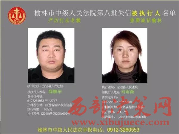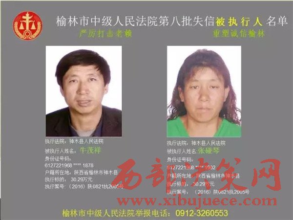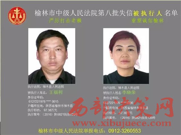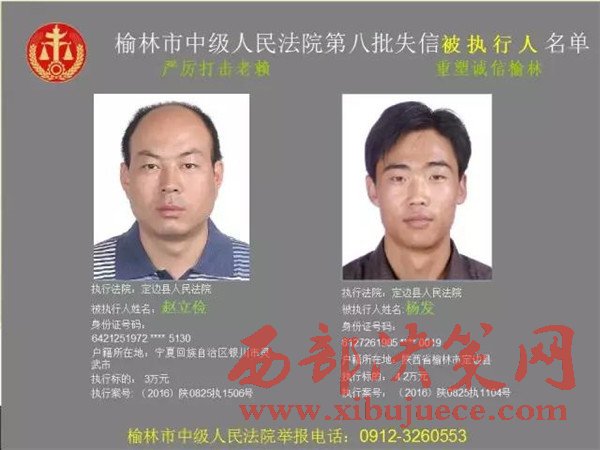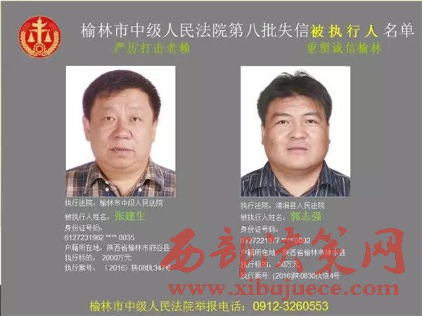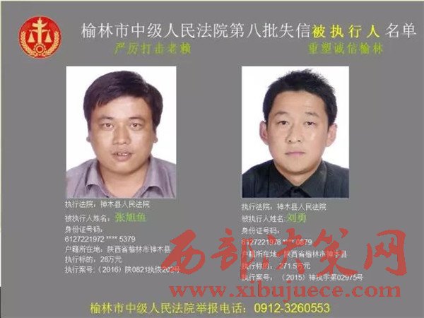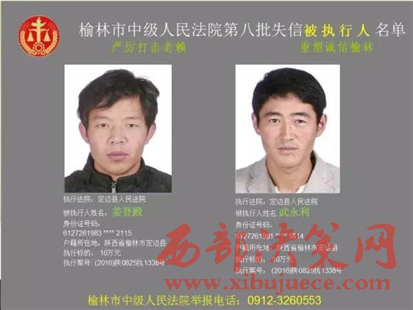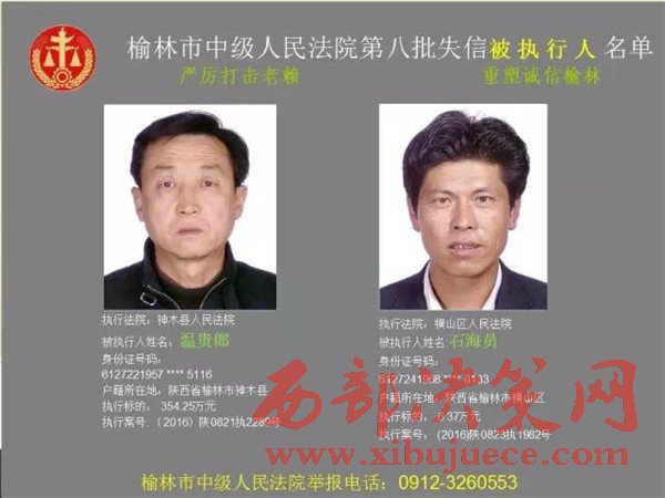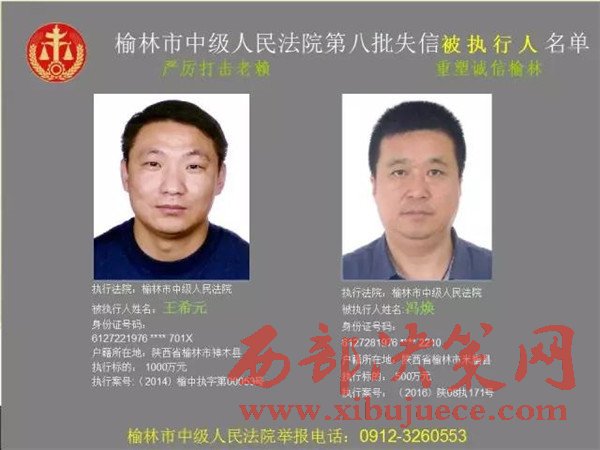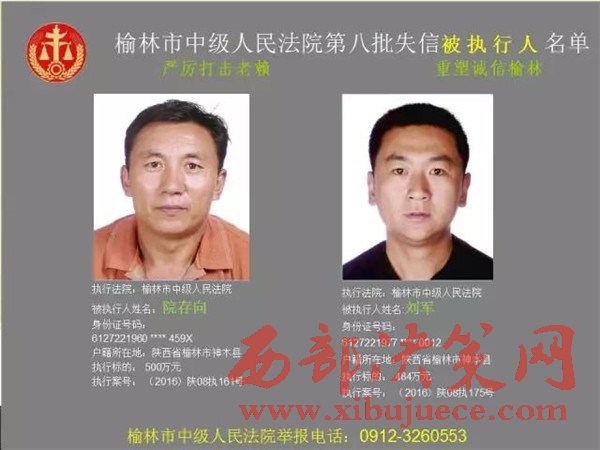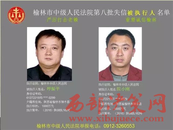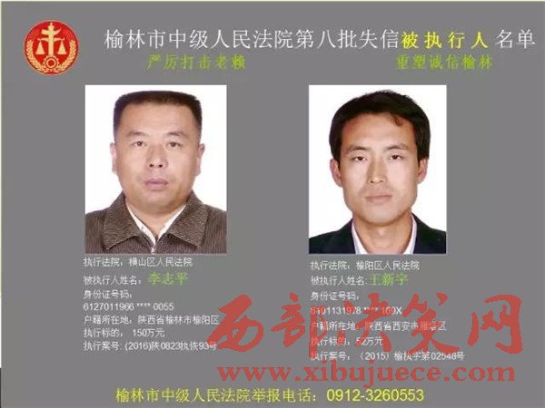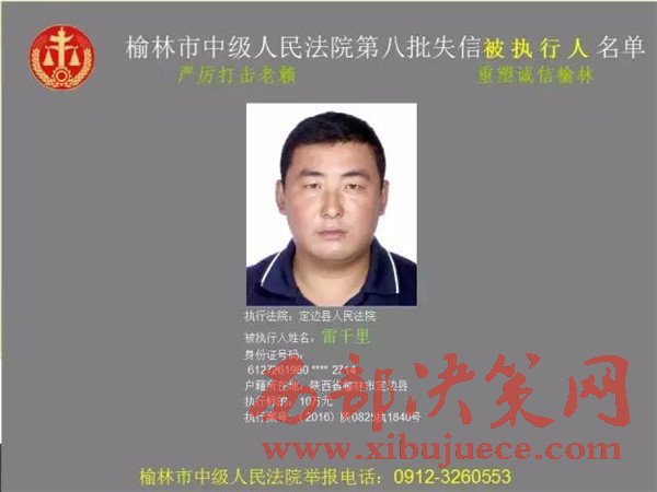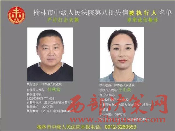 榆林中院最新發(fā)布第八批失信被執(zhí)行人"黑名單"