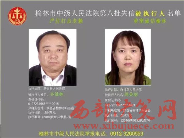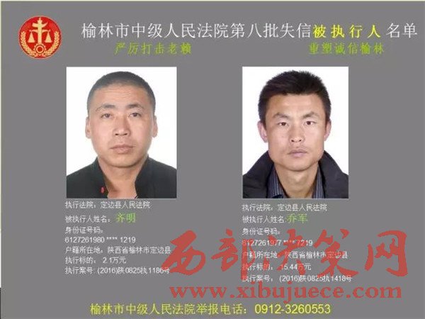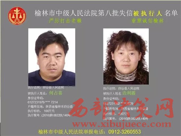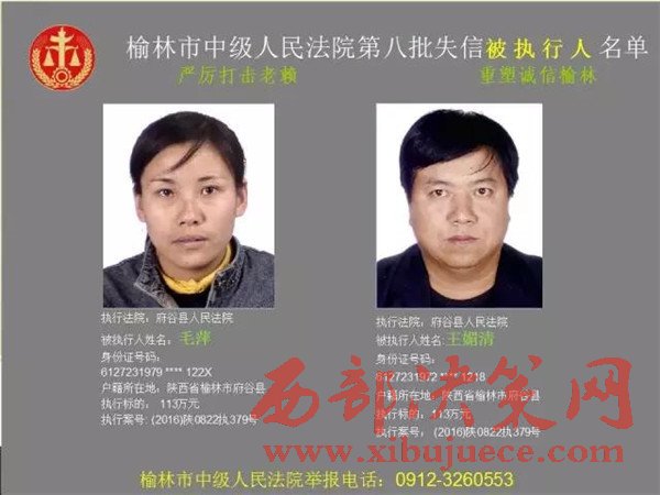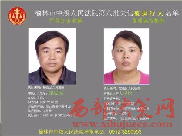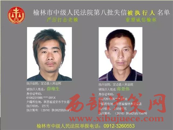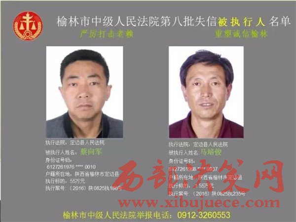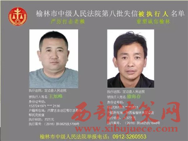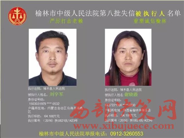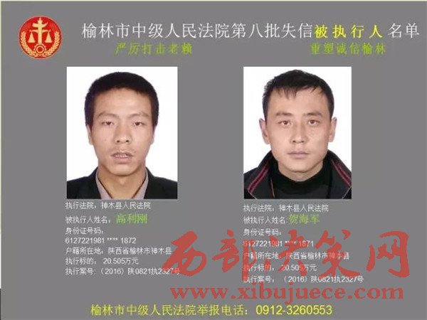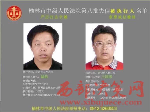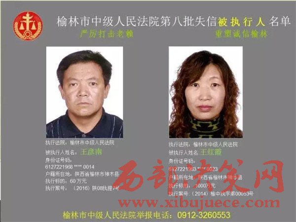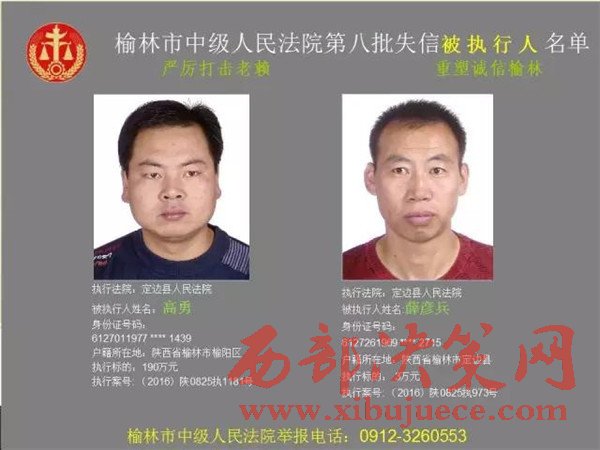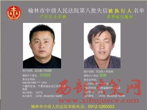 榆林中院最新發(fā)布第八批失信被執(zhí)行人"黑名單"