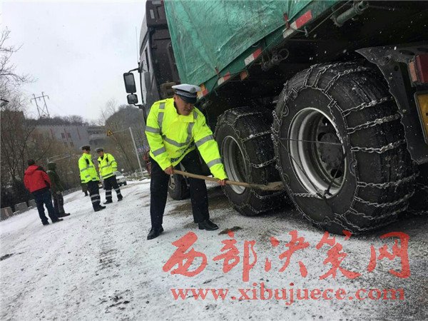 秦嶺初雪行路難 寶雞交警保暢通