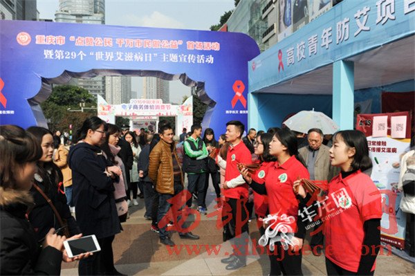 系上紅絲帶,關(guān)愛艾滋病患者。26日,在重慶市“點(diǎn)贊公民·千萬(wàn)市民做公益”暨第29個(gè)“世界艾滋病日”主題實(shí)踐活動(dòng)啟動(dòng)儀式上,記者了解到,根據(jù)市衛(wèi)計(jì)委提供的數(shù)據(jù),截至10月31日,重慶報(bào)告現(xiàn)存活艾滋病病毒感染者和艾滋病病人31092例,其中艾滋病病毒感染者19792例,艾滋病病人11300例。