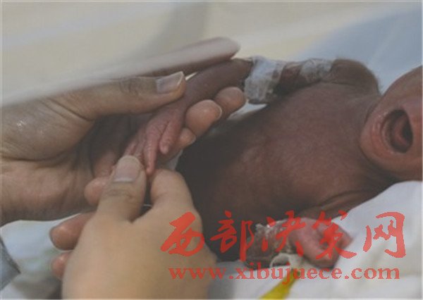 11月30日,在成都市第三人民醫(yī)院的新生兒重癥監(jiān)護(hù)室里,剛剛滿月的“007”正陷入睡夢中。“007”這個(gè)名字,是三醫(yī)院新生兒監(jiān)護(hù)室的護(hù)士們給她取的。她是一名特殊的女嬰,這個(gè)在媽媽肚子里呆了僅31周,就迫不及待來到世界上的早產(chǎn)兒,出生時(shí),體重僅僅700克,幾乎與一瓶礦泉水的重量差不多,整個(gè)身軀只有女生的巴掌大小。