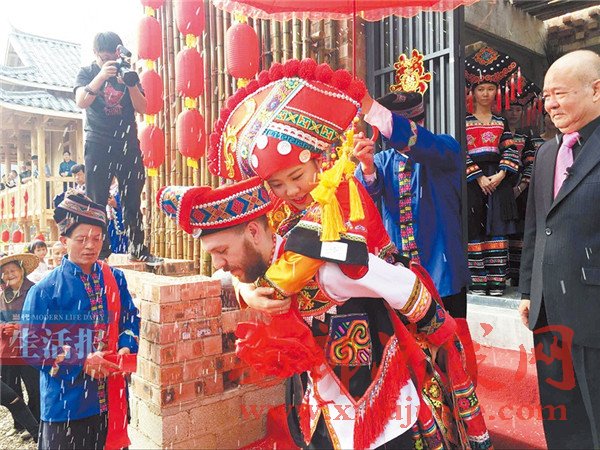 “這場(chǎng)婚禮相比于教堂婚禮來(lái)說(shuō)完全不同,特別熱鬧和好玩。”對(duì)于楊力來(lái)說(shuō),傳統(tǒng)壯族婚禮讓他覺得十分新奇,也讓他一生難忘。