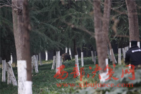 12月7日,安徽合肥,體重近200斤的成年野豬,出現(xiàn)在合肥市包河區(qū)政府大樓院內(nèi),民警兩次鳴槍,合肥市動(dòng)物園工作人員吹了3針麻醉,“二師兄”愣是不倒。下午15時(shí),包河區(qū)行政中心車來車往,前來辦事的群眾擠滿大廳,很多人并不知道,一只野豬就在附近溜達(dá)。“區(qū)政協(xié)一位女領(lǐng)導(dǎo)最先看到,上午7點(diǎn)多,就在國稅局后邊的綠化帶里頭。我也看到了,拿東西攆,它就往西頭跑。跟同事們說,都不相信我,講區(qū)政府怎么可能出現(xiàn)野豬。”物業(yè)師傅一臉認(rèn)真,恨不得用手在空中畫出野豬的模樣,“我是農(nóng)村過來的,那就是野豬,嘴巴又尖又長的嘛。”上午等保安們反映過來,野豬已經(jīng)不知所蹤,大家便不了了之。結(jié)果下午1時(shí)許,大家伙又出現(xiàn)了。“先在綠化帶里曬太陽,被我們趕到包河區(qū)檢察院院子里,接著又跑到區(qū)政府東邊的綠化帶里。”