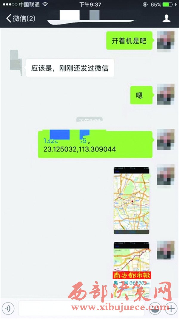 南都記者買到的同事聯(lián)通手機定位信息,數(shù)字為經(jīng)緯度坐標。