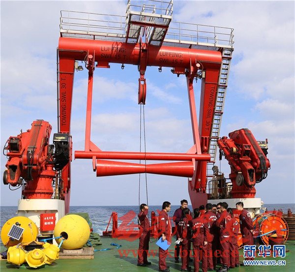 科考隊(duì)員在回收觀測(cè)設(shè)備(12月3日攝)。我國(guó)遠(yuǎn)洋綜合考察船“科學(xué)”號(hào)正在西太平洋執(zhí)行潛標(biāo)觀測(cè)網(wǎng)維護(hù)與升級(jí)任務(wù)。截至目前,科考隊(duì)員已獲取了140余件觀測(cè)設(shè)備連續(xù)1年的現(xiàn)場(chǎng)數(shù)據(jù),維護(hù)了8套深海潛標(biāo),并重新布放至西太平洋海域。