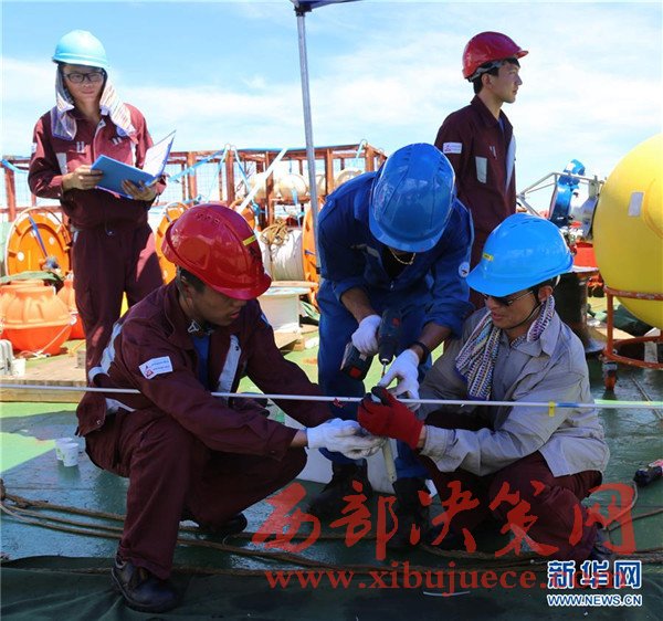 科考隊(duì)員在進(jìn)行深海潛標(biāo)布放和回收作業(yè)培訓(xùn)(11月12日攝)。我國(guó)遠(yuǎn)洋綜合考察船“科學(xué)”號(hào)正在西太平洋執(zhí)行潛標(biāo)觀測(cè)網(wǎng)維護(hù)與升級(jí)任務(wù)。截至目前,科考隊(duì)員已獲取了140余件觀測(cè)設(shè)備連續(xù)1年的現(xiàn)場(chǎng)數(shù)據(jù),維護(hù)了8套深海潛標(biāo),并重新布放至西太平洋海域。