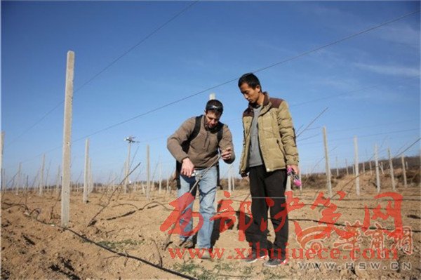 12月8日上午8時30分,淳化縣卜家鎮(zhèn)蔣家山村,當(dāng)?shù)毓r(nóng)剛吃完早飯,林東已從100多公里外的西安趕到這里,他一邊用熟練的中文問大家“咥飽了沒有”,一邊從背包里掏出果樹剪刀,走進(jìn)地里查看樹苗的過冬情況。果園的技術(shù)員拿個大本子跟在林東后邊做記錄,遇到難點(diǎn)林東就親自示范。