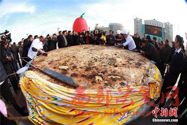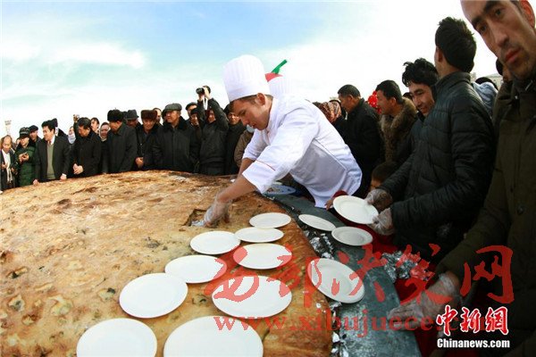 維吾爾族傳統(tǒng)美食“大披薩”直徑3.65米亮相新疆