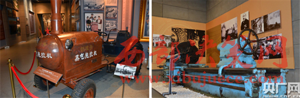 圖(左)1958年,沈陽農(nóng)業(yè)機械廠制造的新中國第一臺18馬力蒸汽拖拉機。圖(右)1959年,沈陽第一機床廠生產(chǎn)的C650型車床。