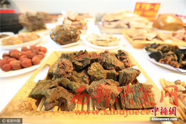2016年12月19日,湖北省襄陽市,一桌包含128道石頭菜的“天下第一宴”在一家古玩城展出。這桌“菜”價(jià)值188萬元。
