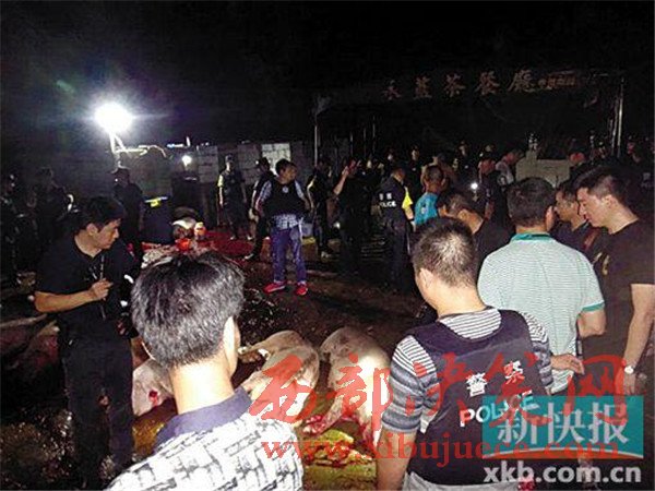 在12月6日最后一次收網(wǎng)行動中,深圳150余名警力在寶安區(qū)搗毀2個有毒有害豬肉生產(chǎn)點,共抓獲違法分子15名,團伙中的老板、工作人員及運貨司機無一漏網(wǎng)。