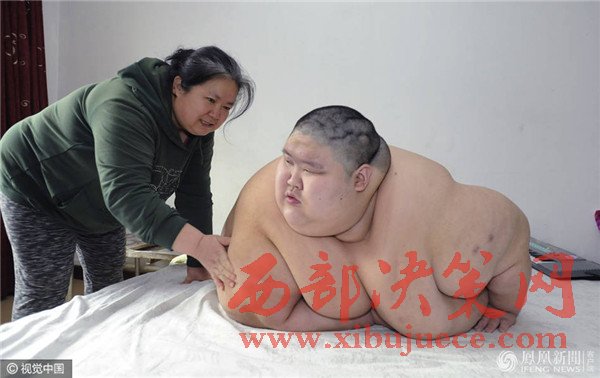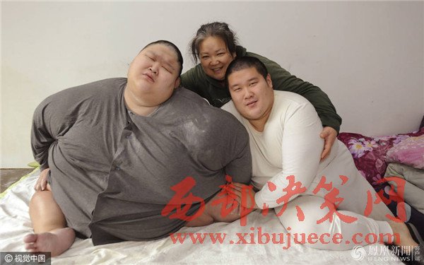 老二的生活基本能夠自理,老大張航郡卻很愁人。當日9時,老大剛剛早起。兩米寬的床,他占據(jù)了—大半。張航郡的體重至少有500斤,沒有—個秤能準確地量出他的體重。腰圍九尺多,不敢說是全國最胖的,但在沈陽絕對是第—胖。500多斤,生活中是什么樣的狀態(tài)?記者看到,張航郡家里的東西大部分是特制的。九尺多的腰,哪有賣這個型號衣服的啊?普通的衣服根本不能穿,必須特制。洗臉、上廁所這些生活基本問題都得馬女士幫助才能完成。“別看他22歲了,智力水平—直停留在1歲左右。叫‘媽媽’都是這幾年才學會的。”張航郡與馬女士的交流會用喊的方式,喊些只有馬女士才能聽得懂的語言。