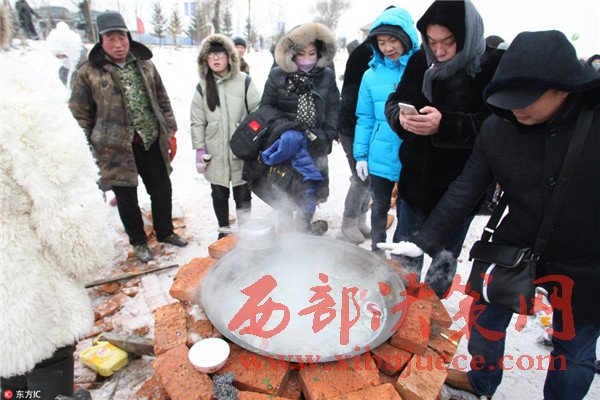 2016年12月25日,哈爾濱市長嶺湖舉行第三屆冬捕冬釣旅游節(jié)?,F(xiàn)場,漁民鑿開冰封的湖面,首網(wǎng)撈起萬余斤鮮魚,吸引了許多市民和游客前來觀看。冰面上支起大鍋,現(xiàn)場熬制鮮魚湯供人們品嘗。
