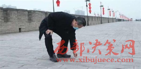 西安市委書記王永康在城墻上撿煙頭