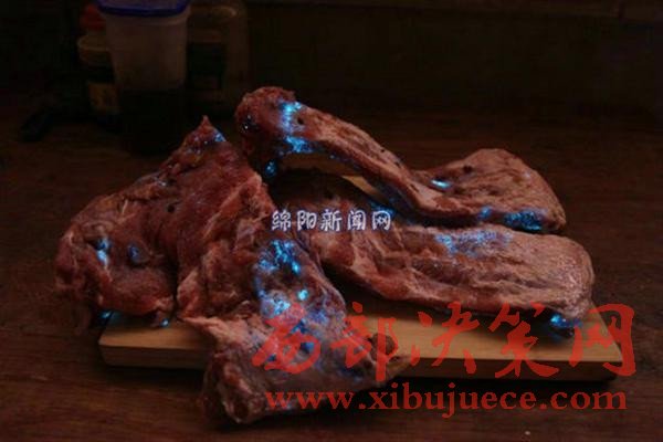 "太恐怖了,豬肉竟然在發(fā)光。"26日,綿陽(yáng)市民蘇女士向記者反映稱(chēng),其在市場(chǎng)上購(gòu)買(mǎi)的排骨竟然在夜里發(fā)出幽藍(lán)的光,這讓她很是驚恐。
