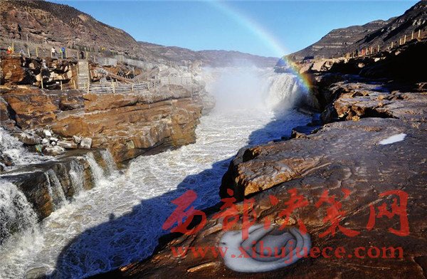 “千里黃河一壺收,旋流洪波濤如山”,到過壺口瀑布的人,都會(huì)被它驚濤拍岸、吞云吐霧的恢宏氣勢(shì)所震撼。豐水期的瀑布固然雄渾豪壯,而冬天的壺口也另有一番風(fēng)韻。冰掛晶瑩剔透,造型各異,與瀑布中飛舞的彩虹交相輝映,吸引了眾多游客。