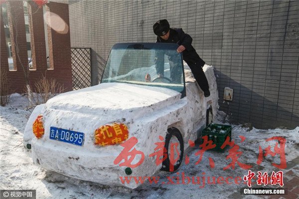 長(zhǎng)春六旬保安造雪雕“敞篷車(chē)”吸引眼球