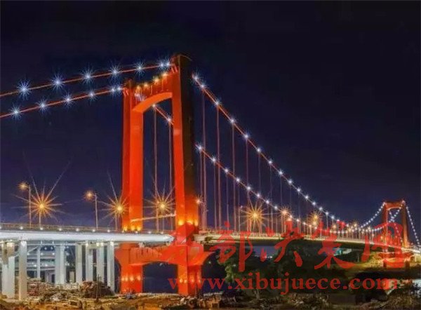 白沙大橋采用獨(dú)塔雙孔120米斜拉橋橋型,橋長2604米,猶如一條巨龍臥在邕江之上橋身安裝的1000多套各種景觀燈將光線直射邕江水面,營造出“橋水合一”如同仙境般的美景。
