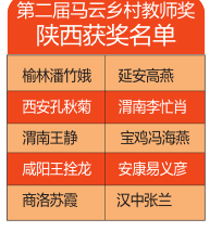 馬云公益基金會2016年6月15日公布第二屆馬云鄉(xiāng)村教師獎入圍名單,13省市區(qū)300位入圍老師中,陜西9地市有30人入圍。之后,13個省開始進行各省初評,陜西省初評由三秦都市報全媒體組織,并采訪報道。經(jīng)過陜西初評、復評,以及全國復評。2017年1月5日晚,100位獲獎老師名單出爐,其中陜西有10位老師獲獎。首屆有陜西等6省參評,陜西有17位老師獲獎。