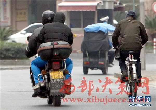 1月12日,反扒隊(duì)員乘坐摩托車跟蹤扒竊嫌疑人乘坐的電動(dòng)三輪車。