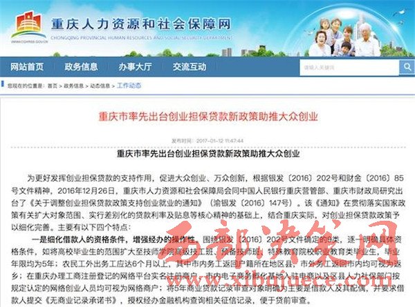 日前,市人社局會同人行重慶營管部、市財政局研究出臺了《關(guān)于調(diào)整創(chuàng)業(yè)擔(dān)保貸款政策支持創(chuàng)業(yè)就業(yè)的通知》,對借款人的資格條件進(jìn)行了細(xì)化,鼓勵區(qū)縣出臺配套政策,強(qiáng)化對科技型企業(yè)的支持,突出扶持的差異性,還健全了貸款工作四項機(jī)制。