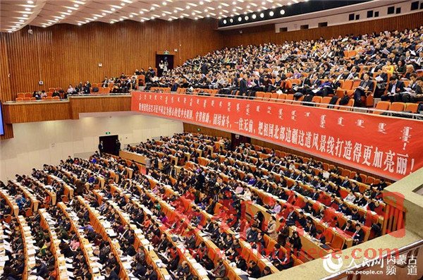 民主、團(tuán)結(jié)、求實(shí)、奮進(jìn)。內(nèi)蒙古人民會堂格外莊嚴(yán),主席臺帷幕中央國徽高懸,會場氣氛隆重?zé)崃摇?/span>