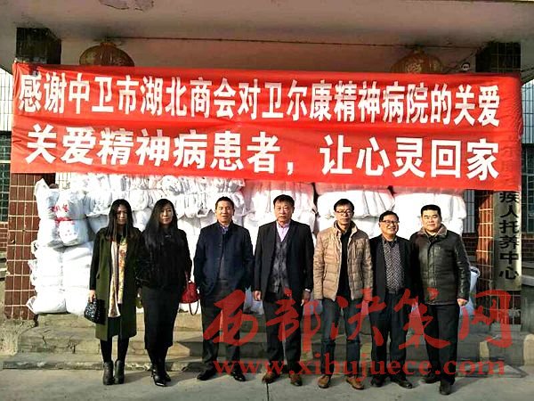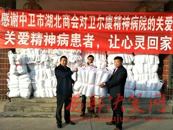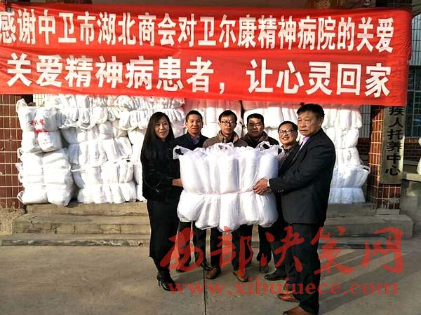 西部決策網(wǎng)訊(黃貞 楊新)2017年1月9日,中衛(wèi)市湖北商會(huì)一行數(shù)人在會(huì)長(zhǎng)朱秀東的帶領(lǐng)下,前往中衛(wèi)市衛(wèi)爾康精神病醫(yī)院進(jìn)行新年前慰問(wèn),并送去價(jià)值2萬(wàn)余元的過(guò)冬棉被。