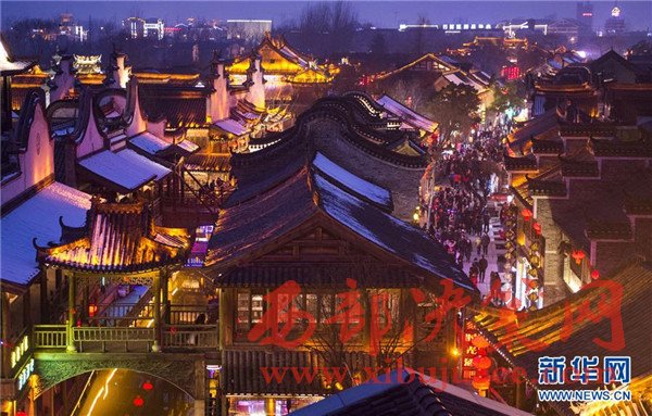 2月2日晚,山東省棗莊市臺(tái)兒莊古城景區(qū)燈光璀璨,游人如織。