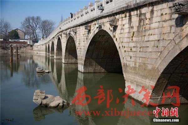 2月15日,位于南京城東運(yùn)糧河上的明代古橋七橋甕橋墩上長期隱藏水中的四只“怪獸”露出了水面,據(jù)南京城市史學(xué)者胡卓然介紹,這是古人設(shè)計(jì)在橋的分水墩上的分水獸,不僅能分水,減輕水流對橋體的沖擊,同時(shí)還標(biāo)出了航道,能防止河中的行船撞上橋墩和橋體。據(jù)了解,七橋甕始建于明代,全長89.6米,高25米,橋身酷似彎弓,共有七個(gè)橋甕,時(shí)間一長,“七橋甕”的名字被叫開了。