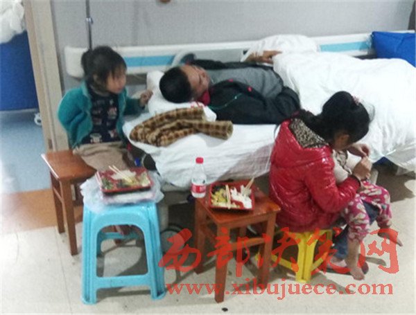 當(dāng)天下午,記者來到醫(yī)院,見到了王先生一家2個(gè)大人,4個(gè)孩子6口人。王先生躺在病床上,正吸著氧氣,三個(gè)孩子圍在王先生身邊,王先生妻子還背著尚在襁褓中的小女兒。