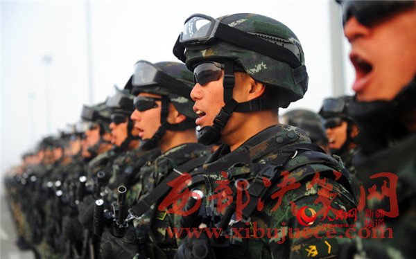 “聽(tīng)黨指揮、能打勝仗、作風(fēng)優(yōu)良!”參加誓師大會(huì)的全體維穩(wěn)力量聲震長(zhǎng)空,有力宣示了全疆各族干部群眾堅(jiān)定不移貫徹社會(huì)穩(wěn)定和長(zhǎng)治久安總目標(biāo)的堅(jiān)定決心,展示了各維穩(wěn)力量忠誠(chéng)勇敢、無(wú)堅(jiān)不摧、敢打必勝的強(qiáng)大戰(zhàn)斗力,彰顯出新疆各族人民同仇敵愾、堅(jiān)決戰(zhàn)勝暴恐分子的共同意愿。