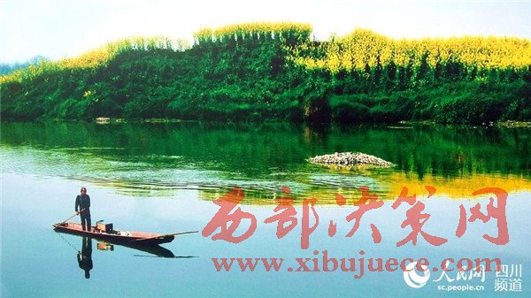 在崇州,每到一處皆是景。圖為一艘小船劃過平靜的河面。(圖片由崇州市委宣傳部提供)