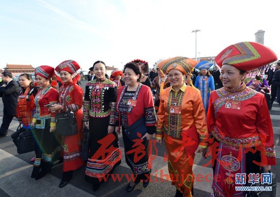 3月7日,全國(guó)人大代表申紀(jì)蘭(左)和郭鳳蓮準(zhǔn)備參加十二屆全國(guó)人大五次會(huì)議山西代表團(tuán)的會(huì)議。在兩會(huì)會(huì)場(chǎng)內(nèi)外,女代表、女委員、女工作人員、女記者在工作中盡職盡責(zé),展現(xiàn)著自己的風(fēng)采。