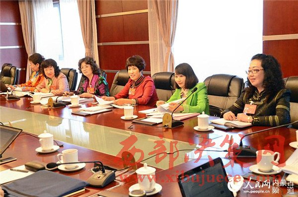 內(nèi)蒙古代表團(tuán)的女代表們參加分組審議