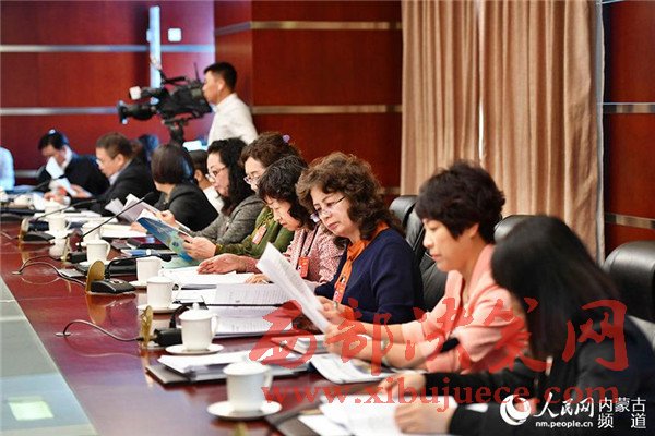 內(nèi)蒙古代表團(tuán)的女代表們參加分組審議。